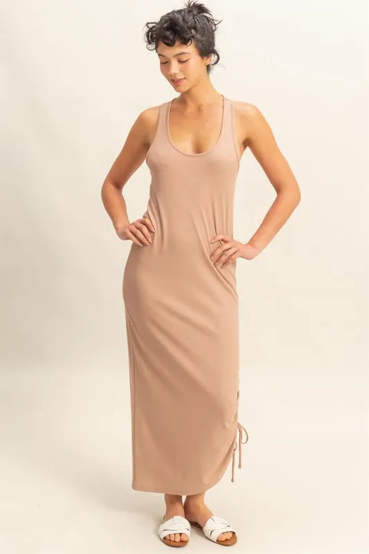 HYFVE Scoop Neck Side Tie Detail Midi Dress